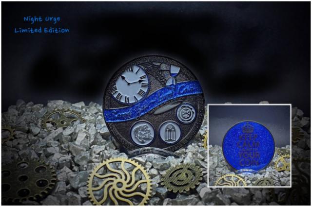 Elves Path Geocoin - LE75 - Quel'dorei - HochElben - antik silber - blau