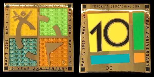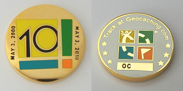| Geocoin Club May 2010 Geocoin 10th Anniversary |