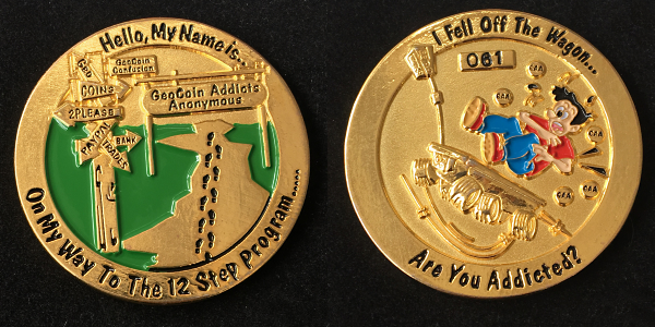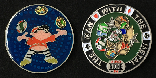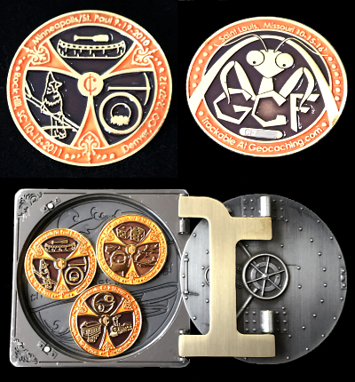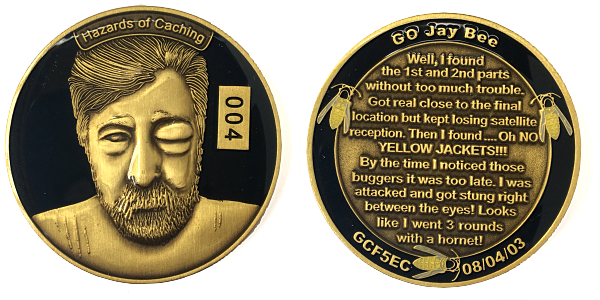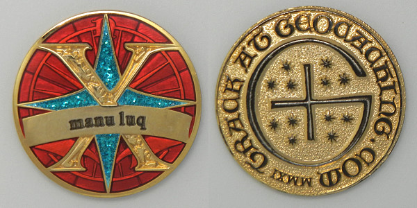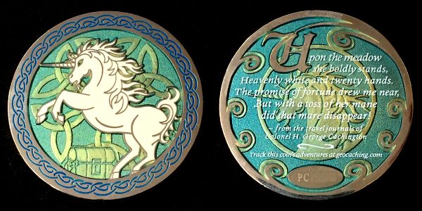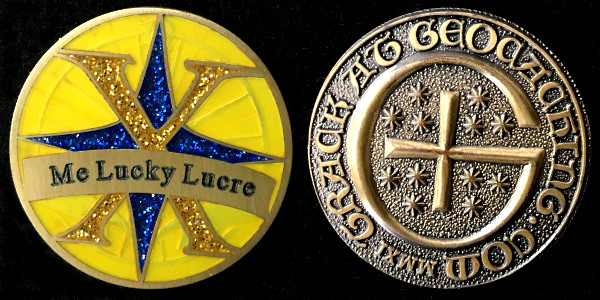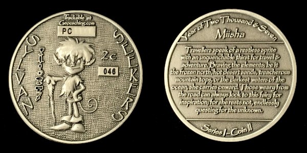 | Mini-Doubloon 2011 Geocoin JackHoeFluteFaceGrievousAngelusyoopers - purple/greenusyoopers - yellow/redDorsetgalFudgemanWoejam - green/black/redWoejam - red/black/whiteWoejam - red/blue/whiteDelta 123Buckeye ViewTonya & Boys |