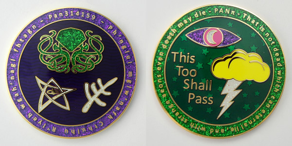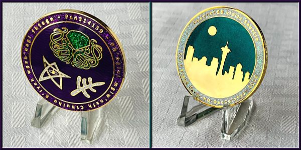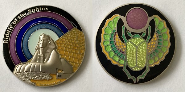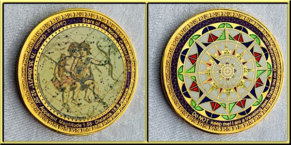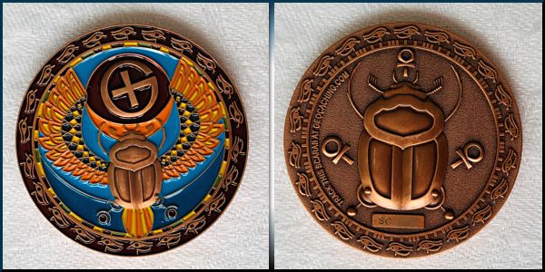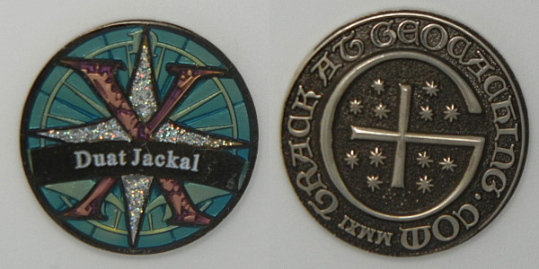 | Lotus Compass Geocoin Anubis and Meh |