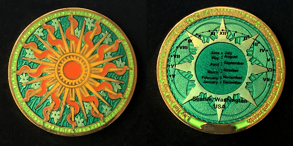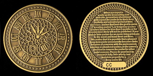 366 Days of Geocaching Geocoin (Sundial)