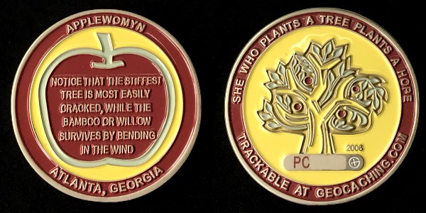 Applewomyn #2 Geocoin - Yellow/Green