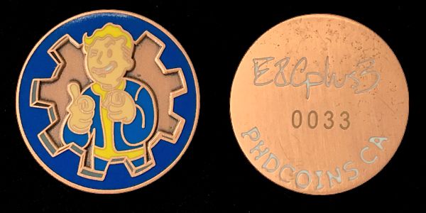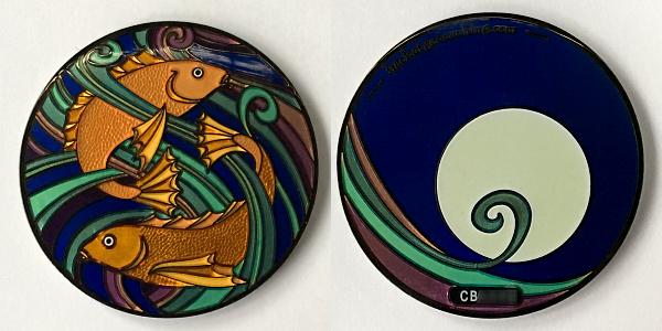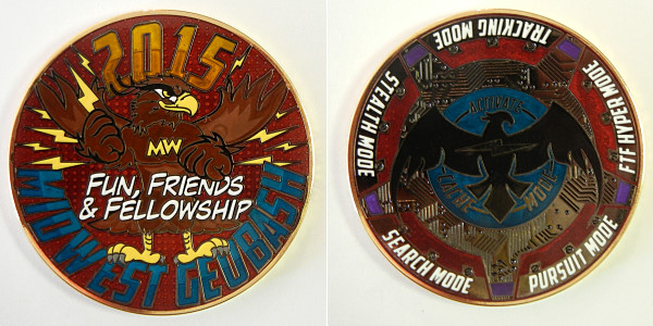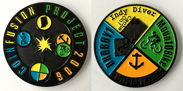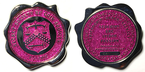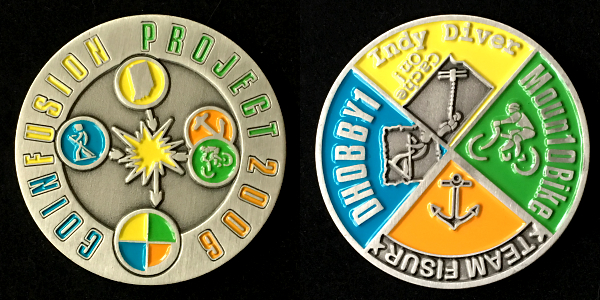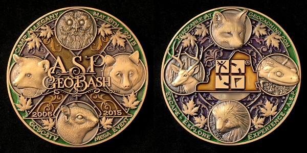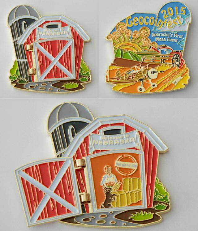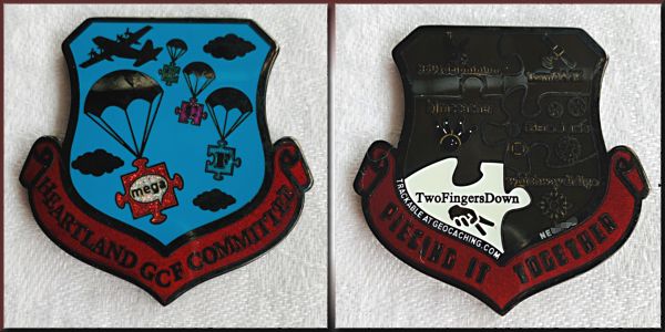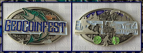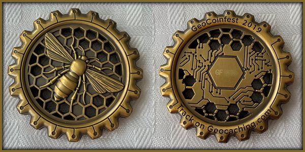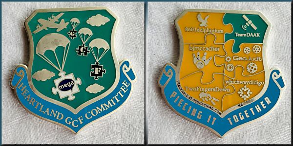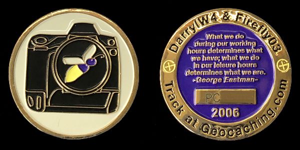 | Geocoinfest 2015 Committee Personal Geocoin 8601delphinium, bjmccacher, whichwaydidigo |