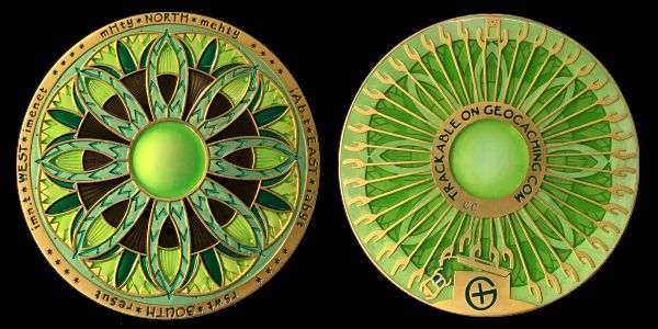| Crystal Compass Rose Geocoin, Amazon Forest Geocoin Any edition: Glacier Ice, Amazon Forest or Earth Stone |