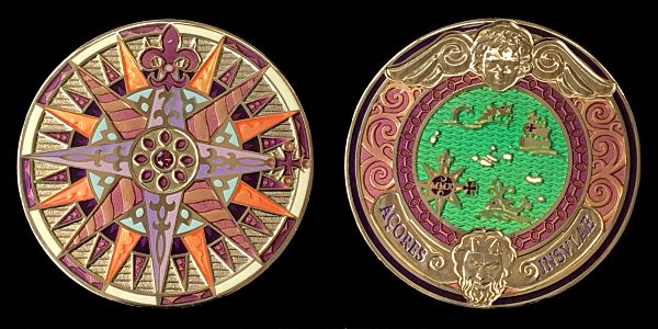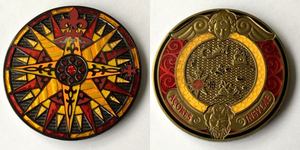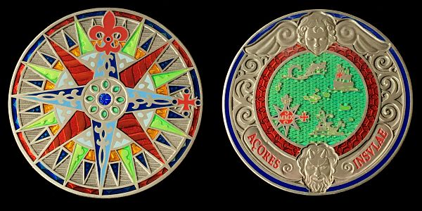 | Compass Rose Geocoin 2010 Graciosa - Black Nickel w/ Light Colors |