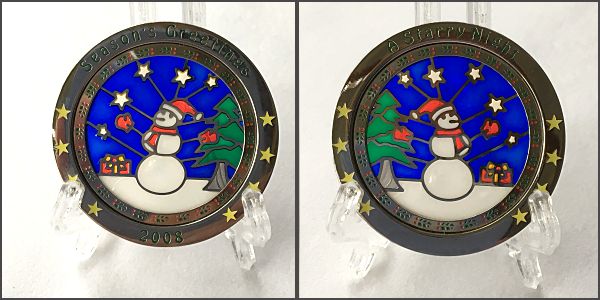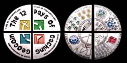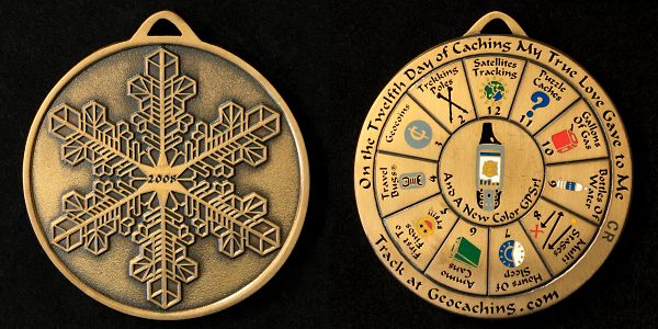 | 12 Days of Caching Geocoin 4- piece set by Christopher Rake 2006 |