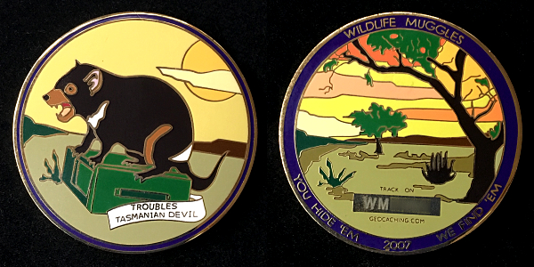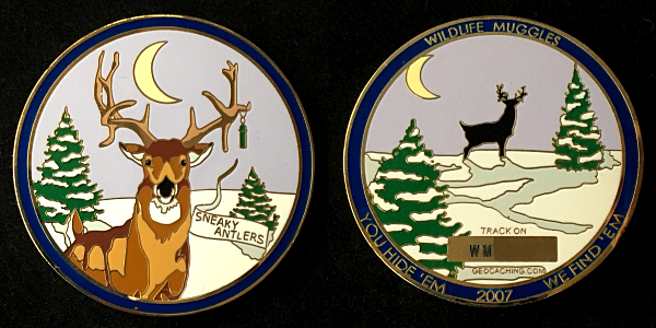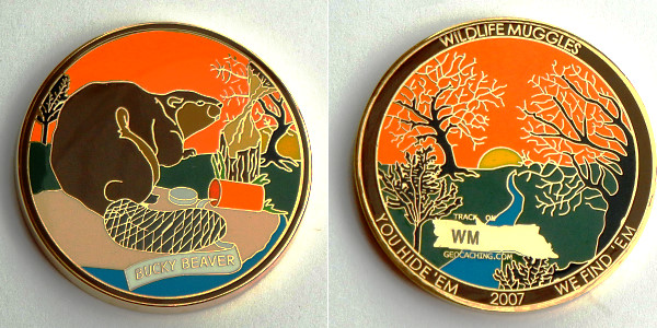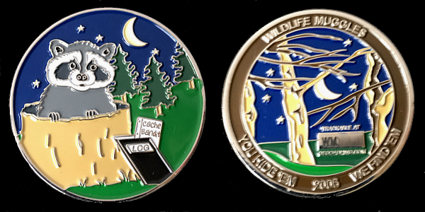 | Wildlife Muggles Geocoin Cache Bandit - Gold/IHE |