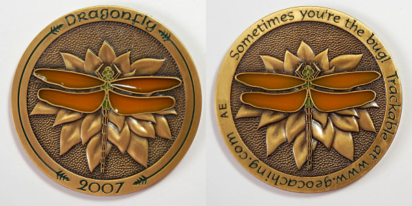| Dragonfly 2007 Geocoin All 4 colors in wings LE |