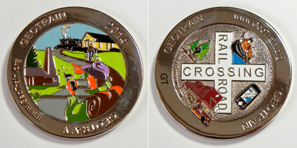 | Signal’s Christmas Train Set Geocoin Buffalo Rail Car by Lynn Worley Litherland in Artist Edition only |