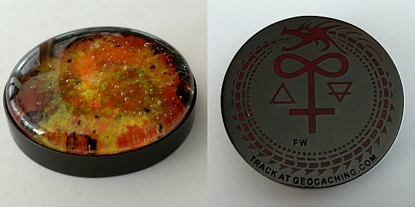 | Cacher Geocoin Deadliest Cache(Orange/Yellow/Red), BlackWidow, Cammo, No epoxy (Blue/Red/Green), |
