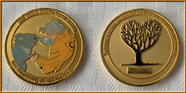 | Best Friends Geocoin Satin Gold w/ Purple |