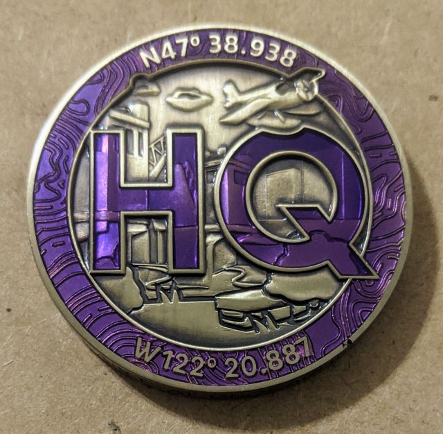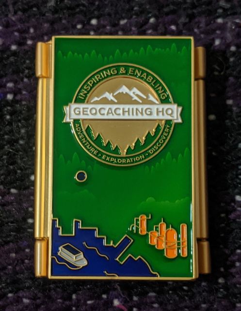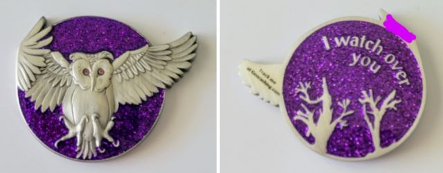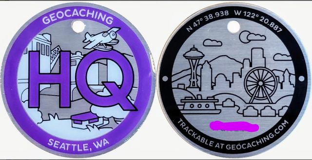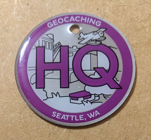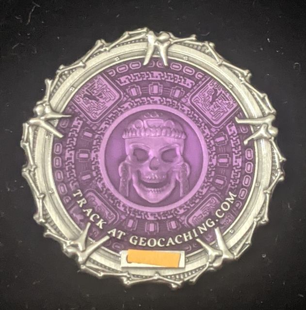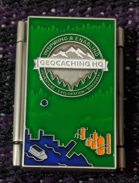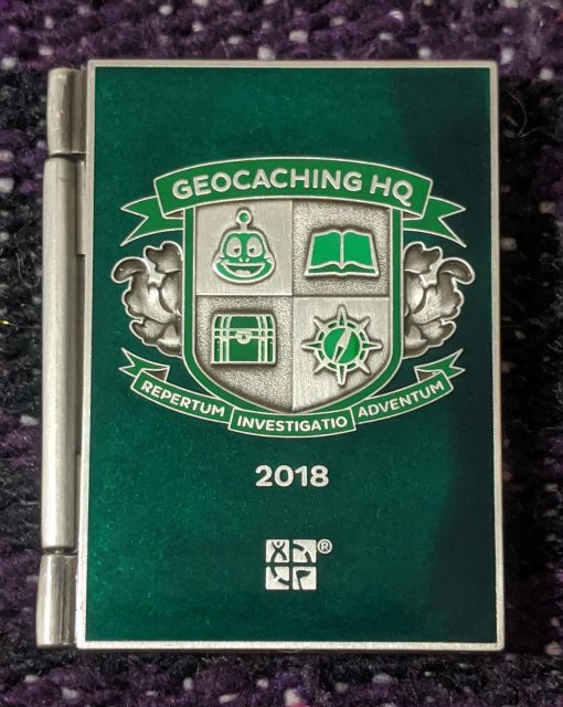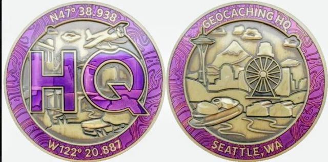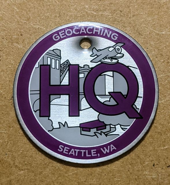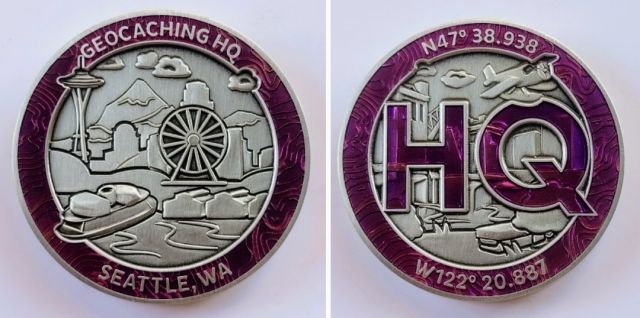 Geocaching HQ Tag 2019 Purple with coin
