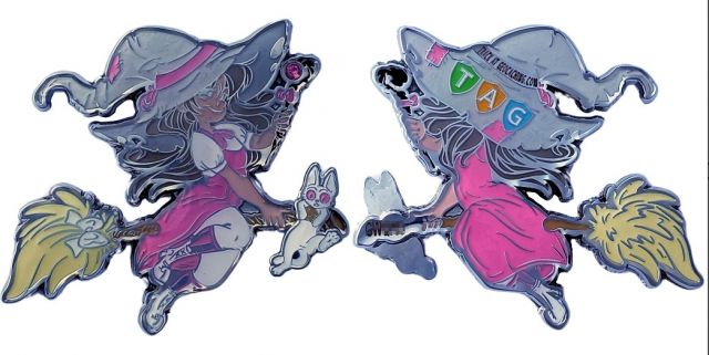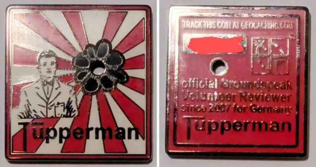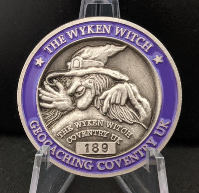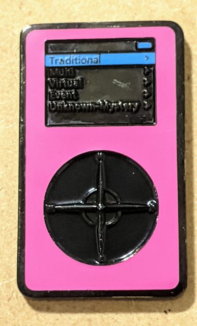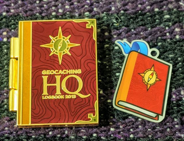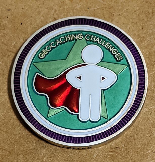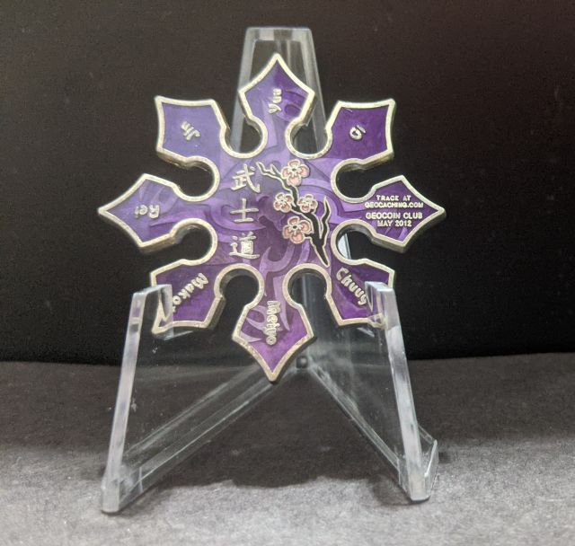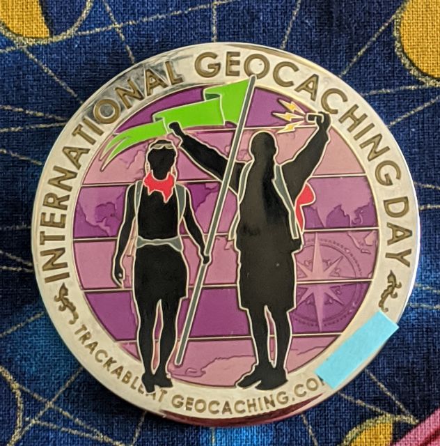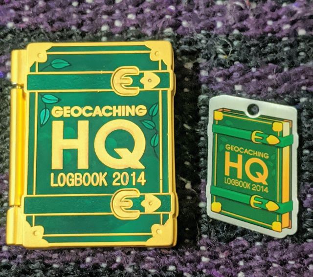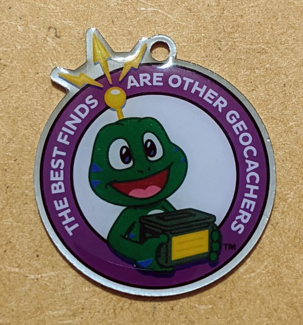 Geocaching HQ Tag 2019 Purple with coin