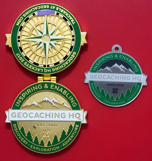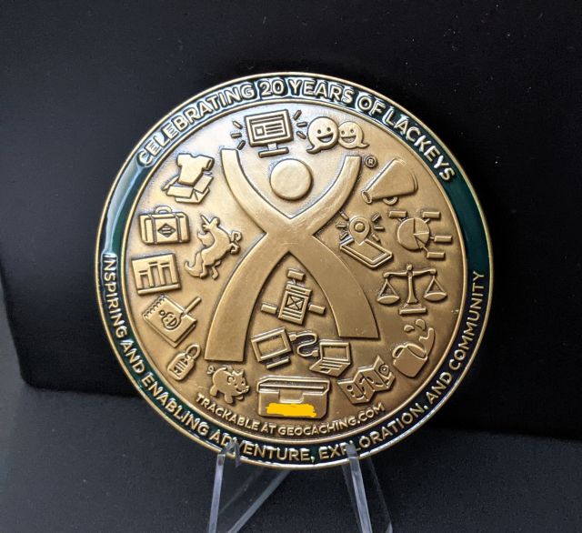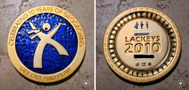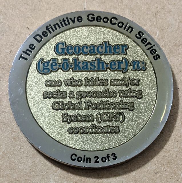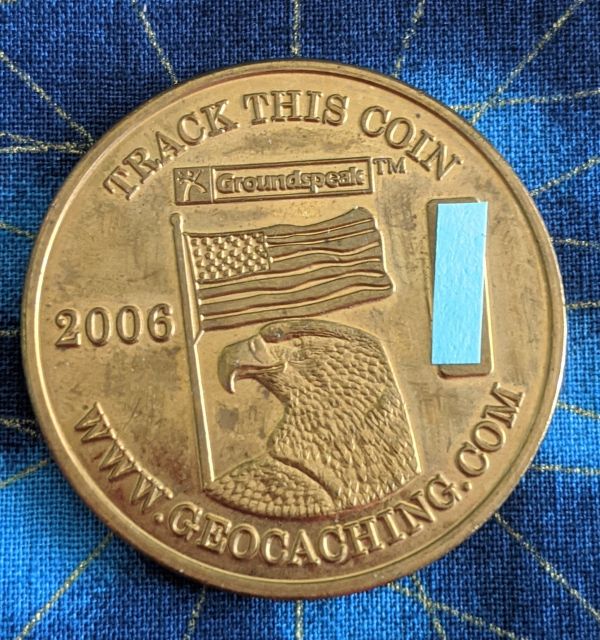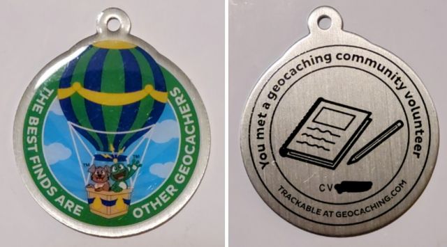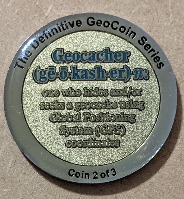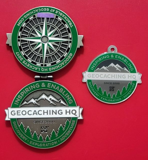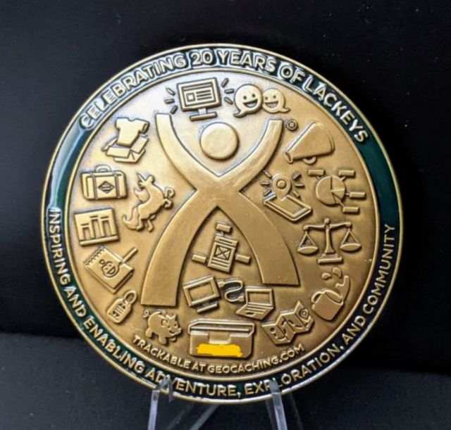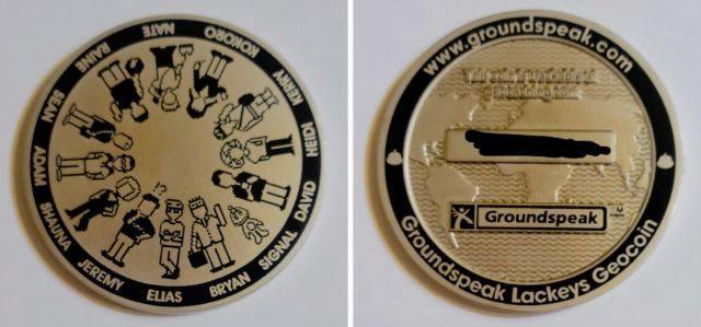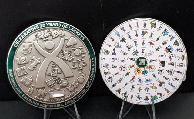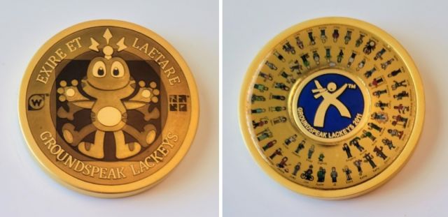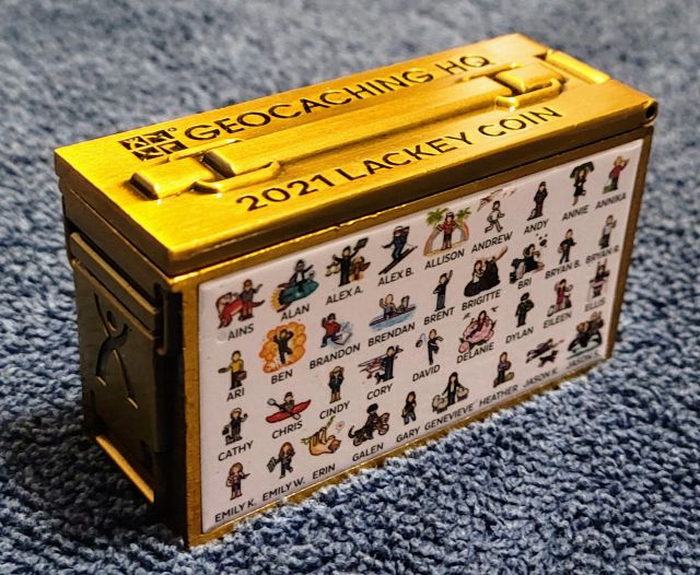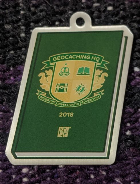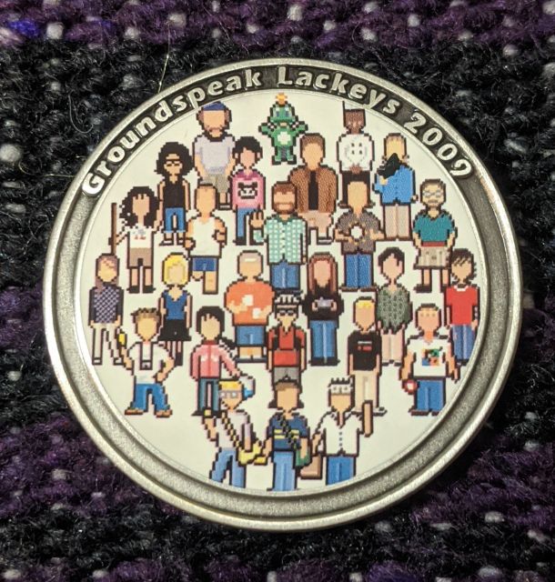 Geocaching HQ Lackey 2021 Geocoin Tag came with antique silver coin