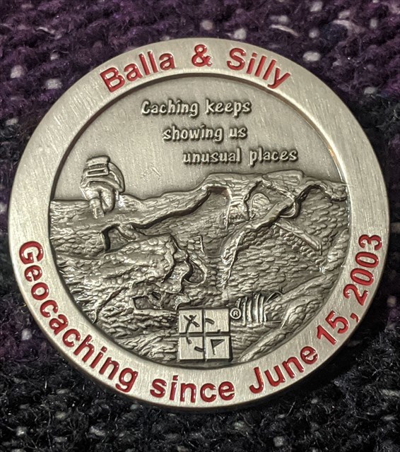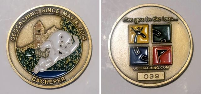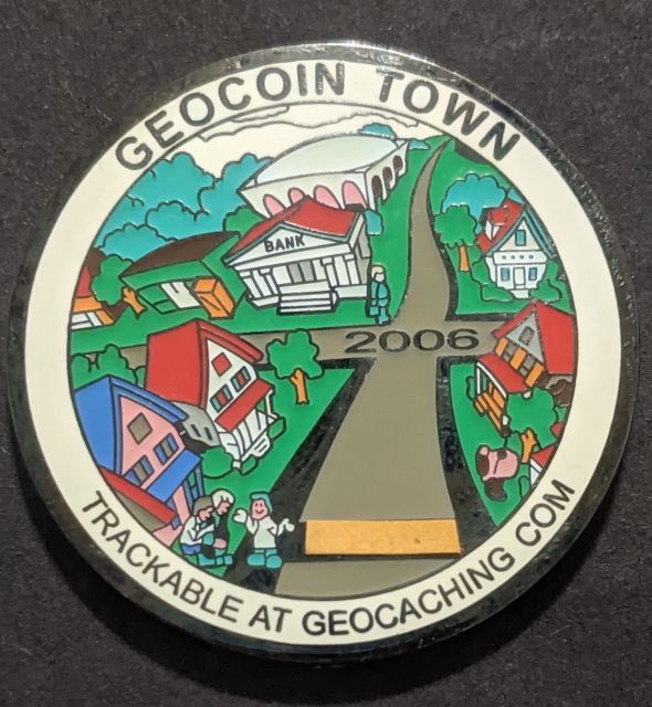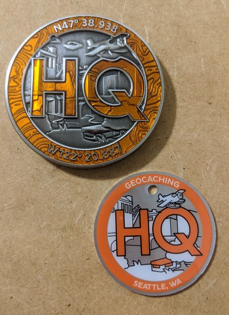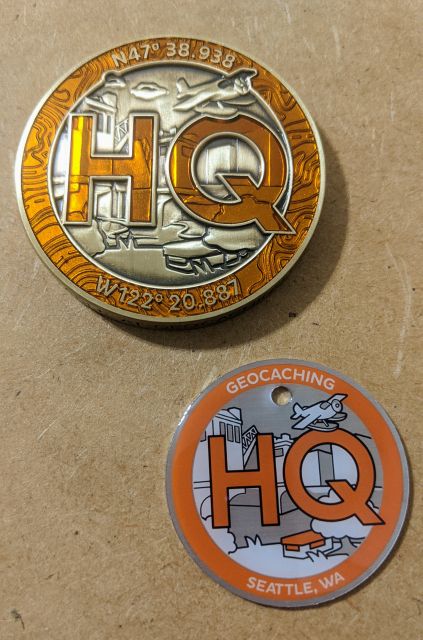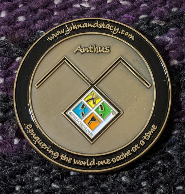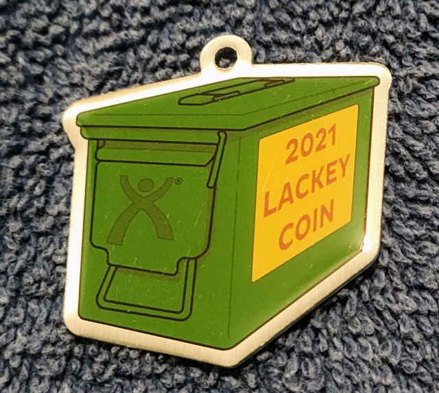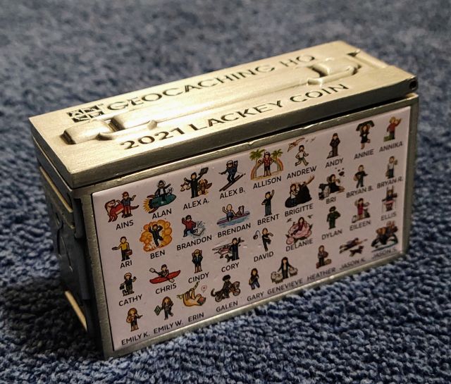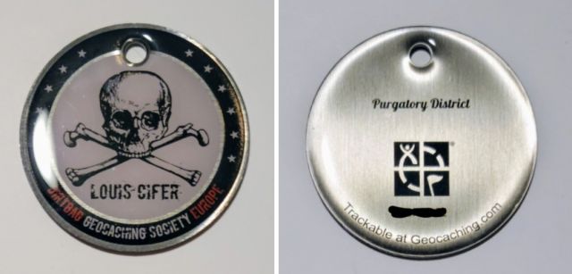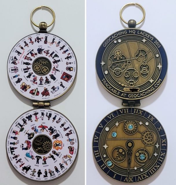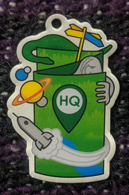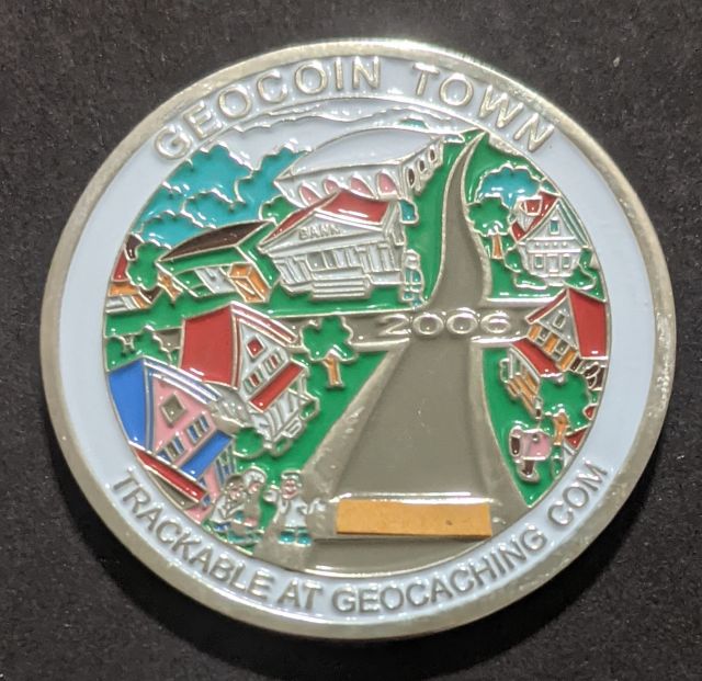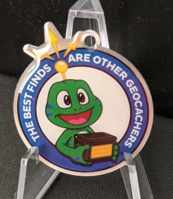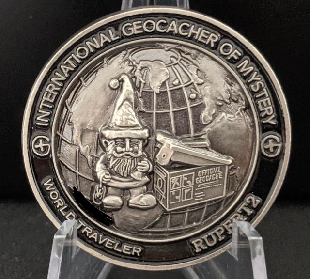 Geocaching HQ Lackey 2021 Geocoin Tag came with antique silver coin
