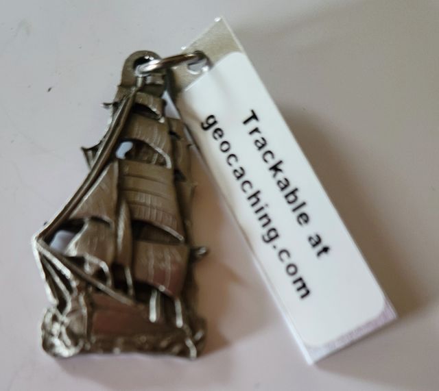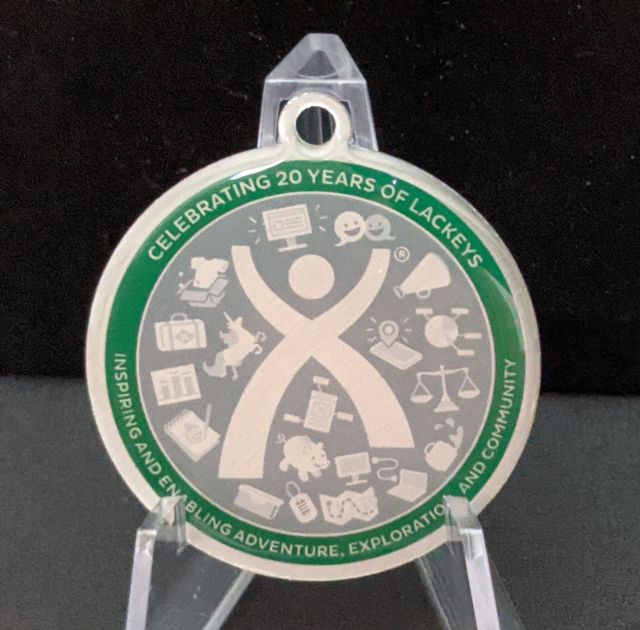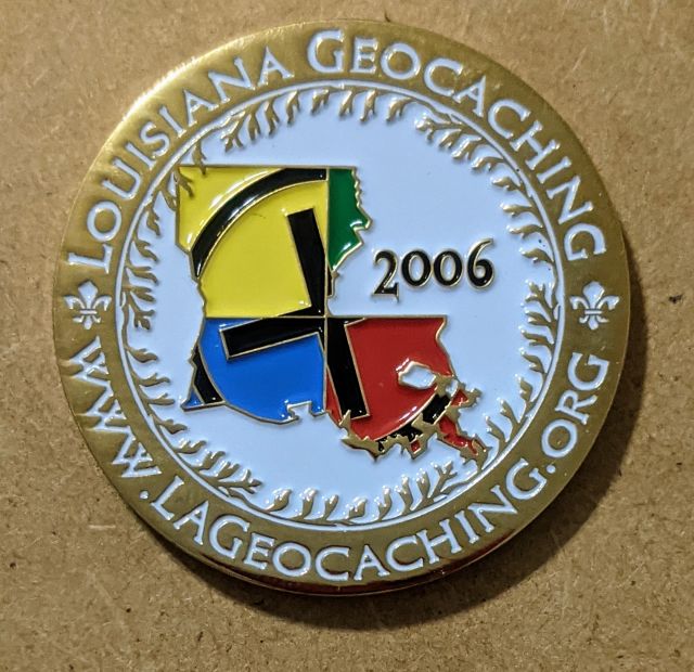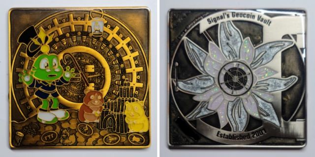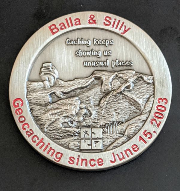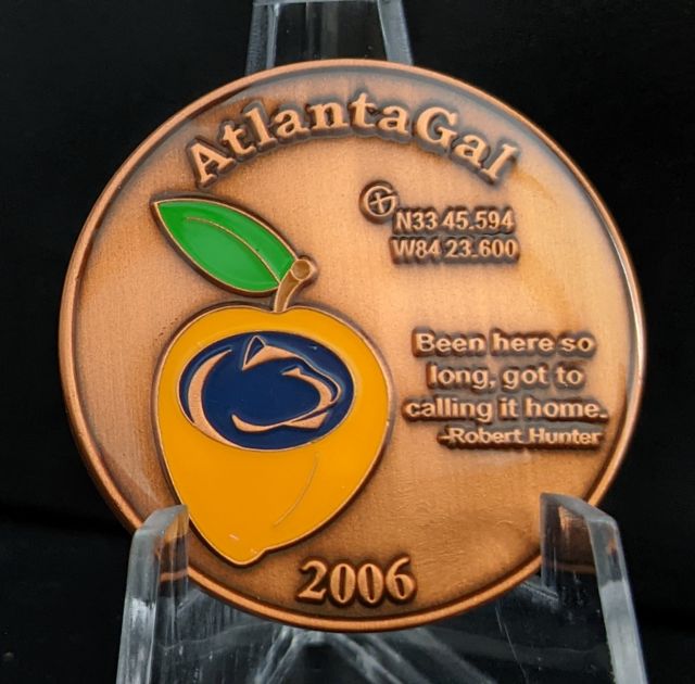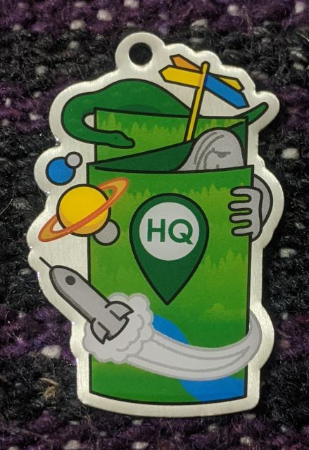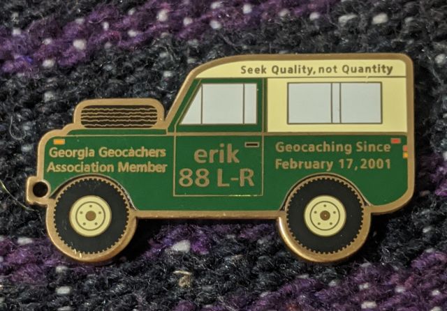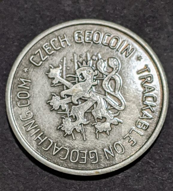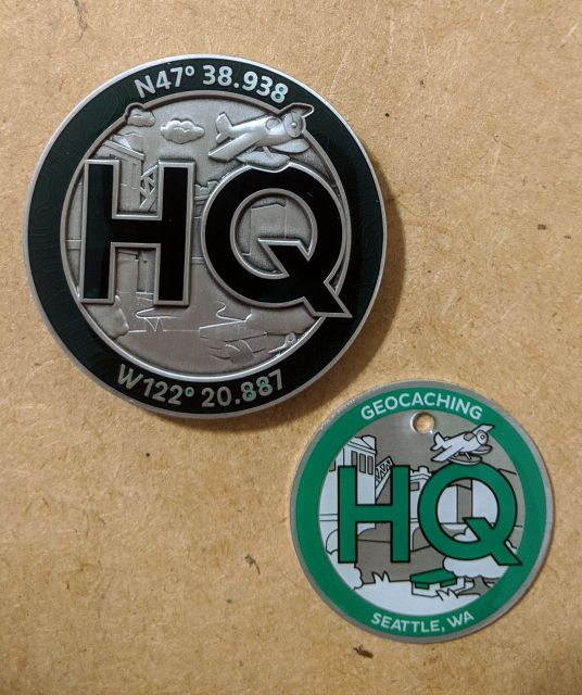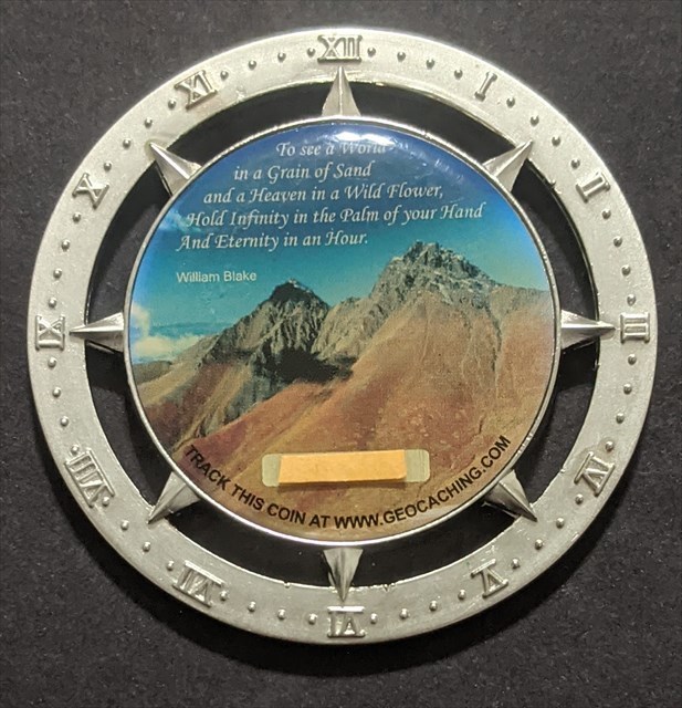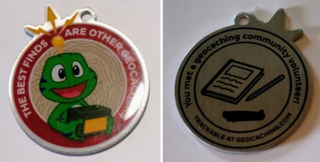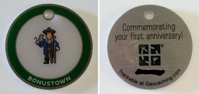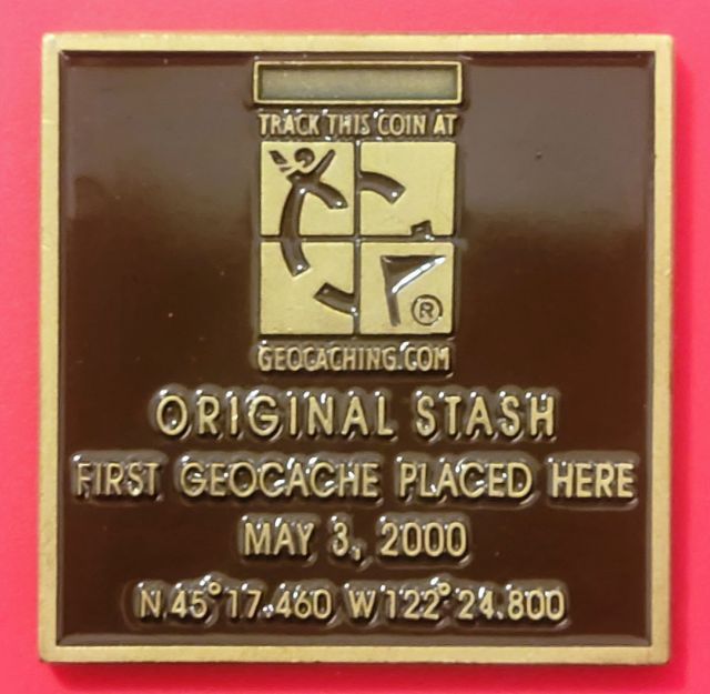 Geocaching HQ Lackey 2021 Geocoin Tag came with antique silver coin