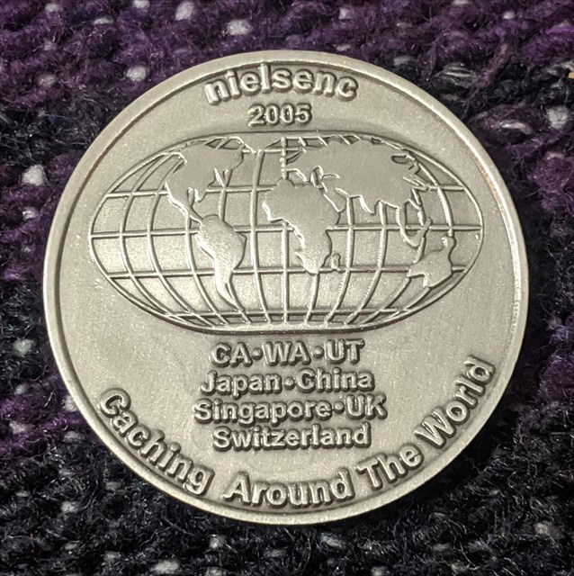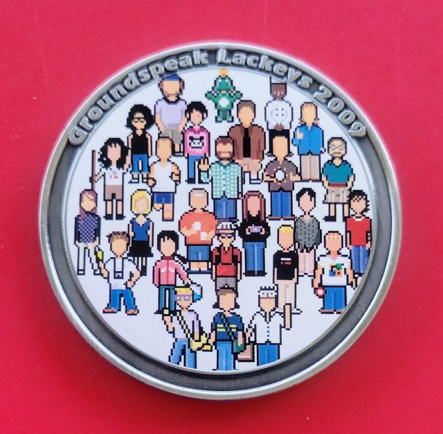 Geocaching HQ Lackey 2021 Geocoin Tsg came with antique silver coin