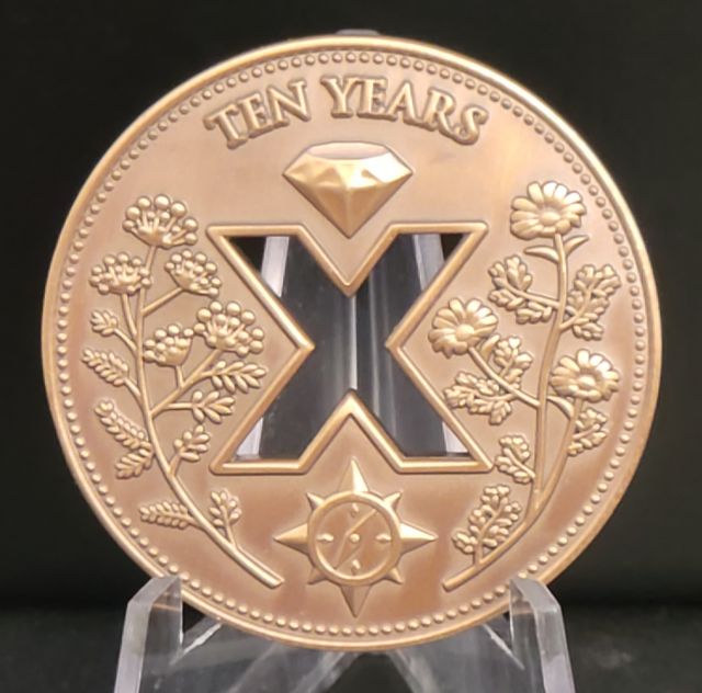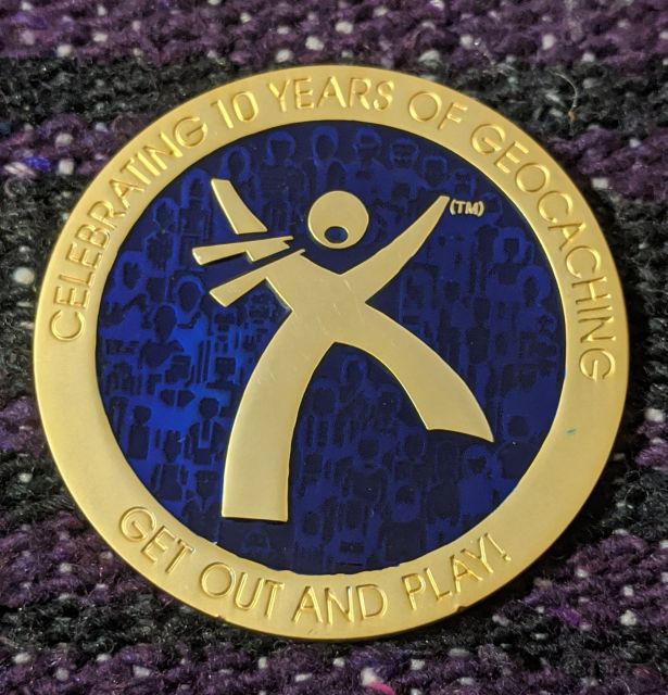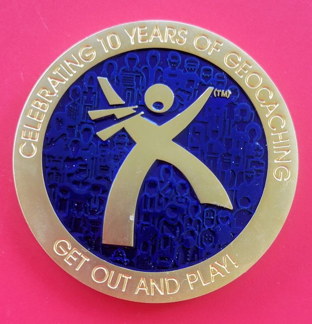 10 Years of Geocaching Geocoin Matte Gold
