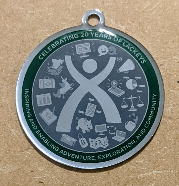 Geocaching HQ 2020 Lackey Geocoin Tag that came with the Antique Silver