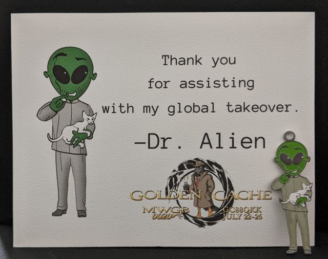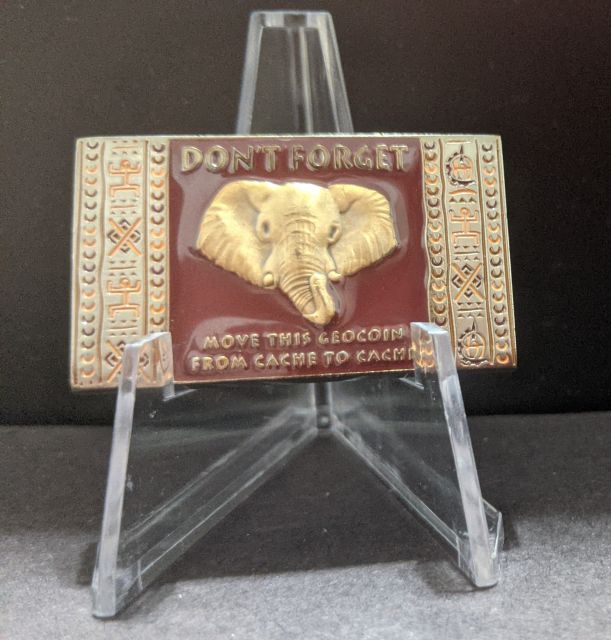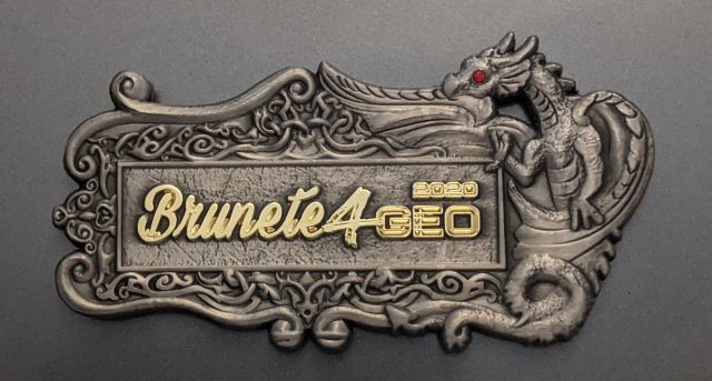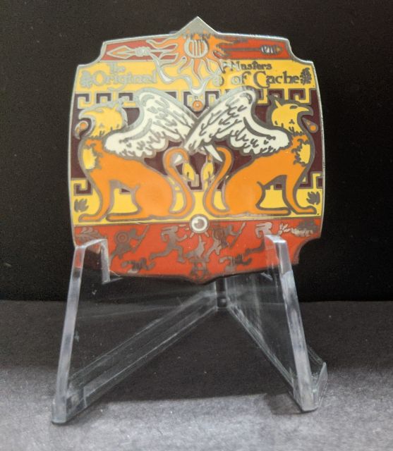 Geocaching HQ 2020 Lackey Geocoin Tag that came with the Antique Gold Coin