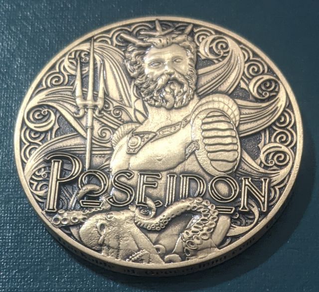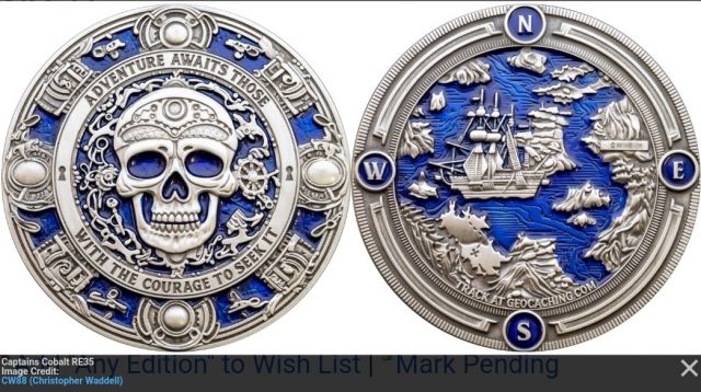 | Neptunes Compass Geocoin Antique silver blue Deep Sea Nautical LE |