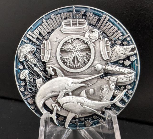 Neptunes Compass Geocoin Arctic Sea Satin Silver Dark Blue LE200