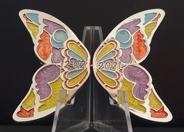Leap Year 2016 Multi Event Poison Dart Frog Geocoin Ghost of Pan, London Polished Silver LE30