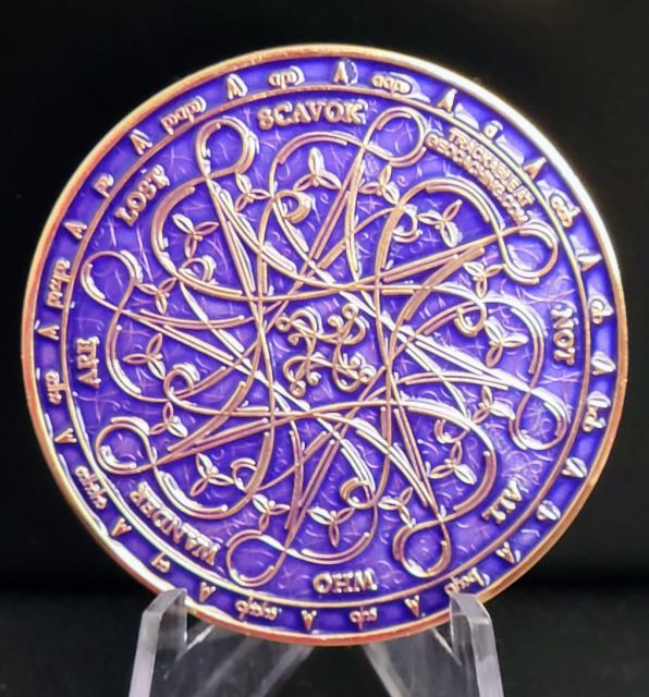 Geocaching HQ Geocoin 2019 Purple Antique Gold with tag
