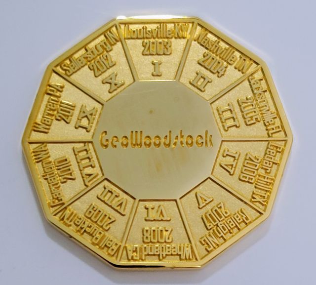 15 Years of Geocaching - Multi Event Geocoin Abilene, TX Polished Gold