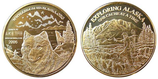 TBYBCW Caching Between the Poles Geocoin (north) - polished gold