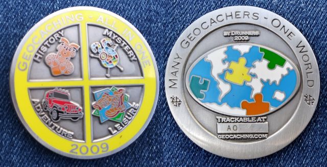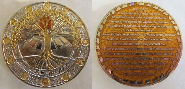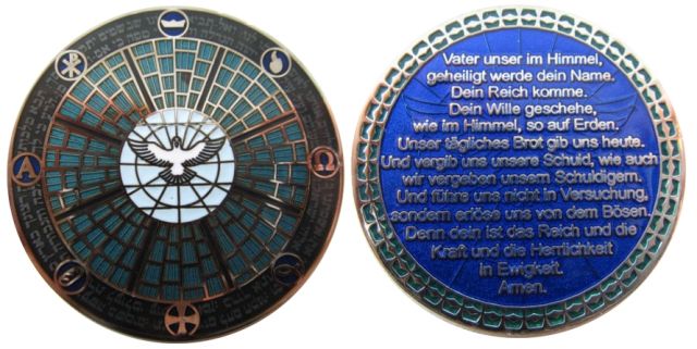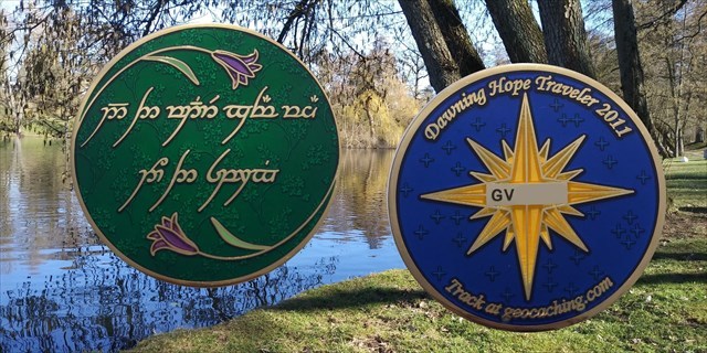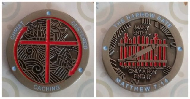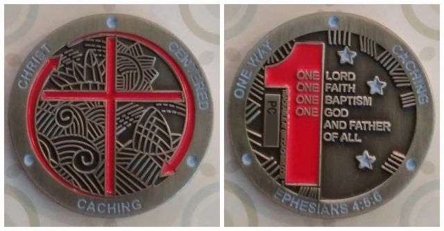 - christliche Geocoins - viele Ausgaben des Vaterunser und des Psalm 23 von Gregson Vaux sind dabei, aber auch Einzelcoins mit dem Thema Glaube und Gott.