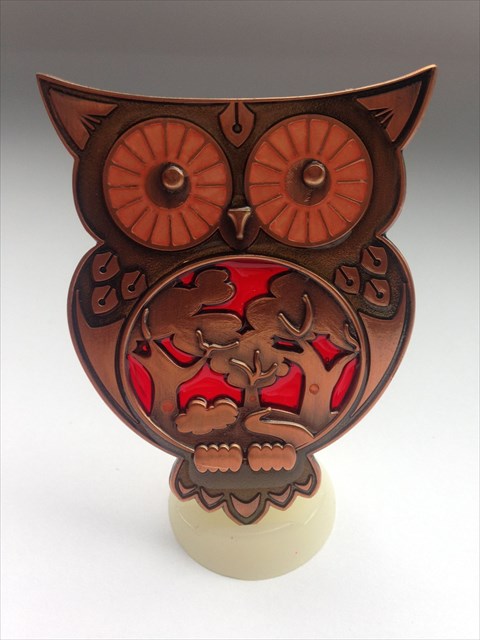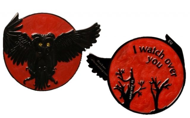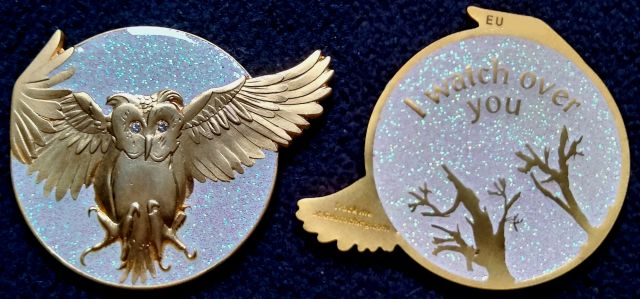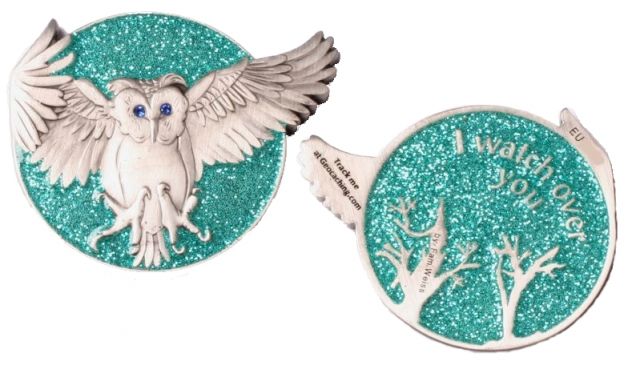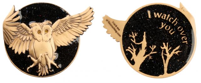 | Olanda the Owl Geocoin FO (Friends Only) (40 Stück) Name: Red Moon Mystic Edition Metalfarbe: Antique Copper Mondfarbe: Glitzer RED Augenkristal: light siam |
