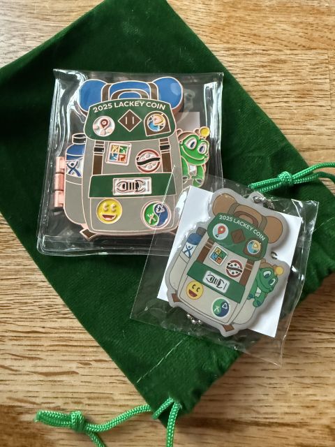 Geocaching HQ Lackey 2025 Geocoin and Tag Set