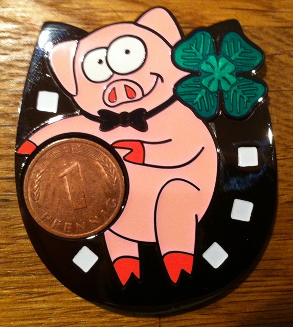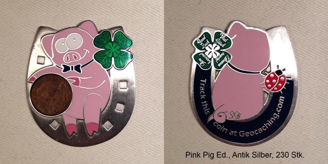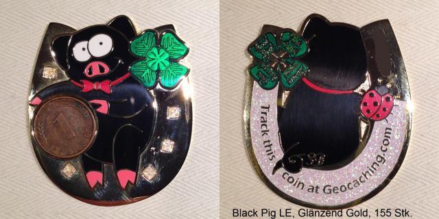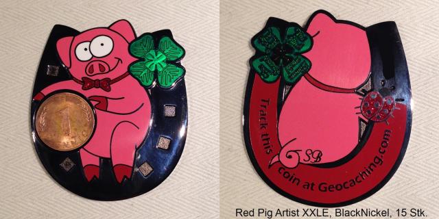 Good Luck! Geocoin, Red Pig Artist XXLE, BlackNickel, 15 Stk.
