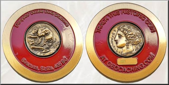 Dionysios' Double Deka Drachme Historic Geocoin