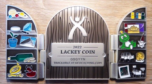 Thoto's Geocaching HQ Lackey 2022 Geocoin and Tag Set