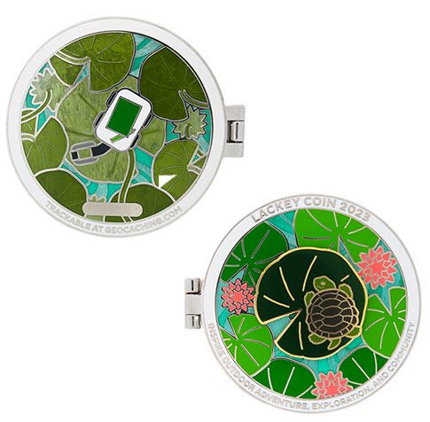 Thoto's Geocaching HQ Lackey 2025 Geocoin and Tag Set