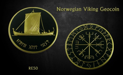 Norwegian Vikings Geocoin - Satin Gold RE
