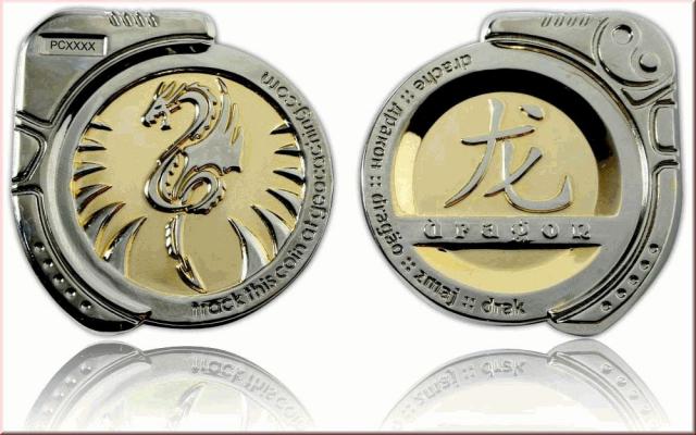 Dragon Geocoin - Poliertes Silber / Poliertes Gold XLE