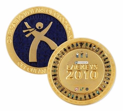 Geocaching HQ Lackey 2022 Geocoin and Tag Set
